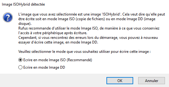 4 – Sélectionnez Écrire en mode Image ISO puis cliquez sur OK.